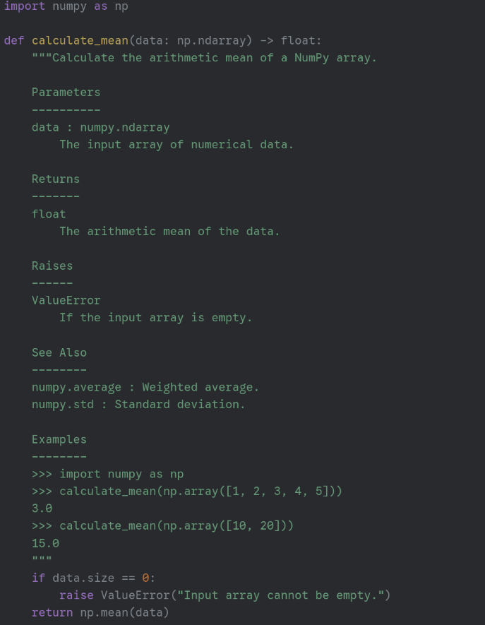 - Numpy style: more detailed, ideal for scientific and mathematical projects